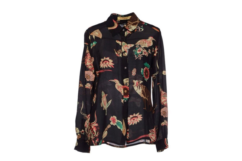 Camicia Zoe, 100% seta, bellissima fantasia Uccellini sullo sfondo nero, Best Ana Pires Milano.